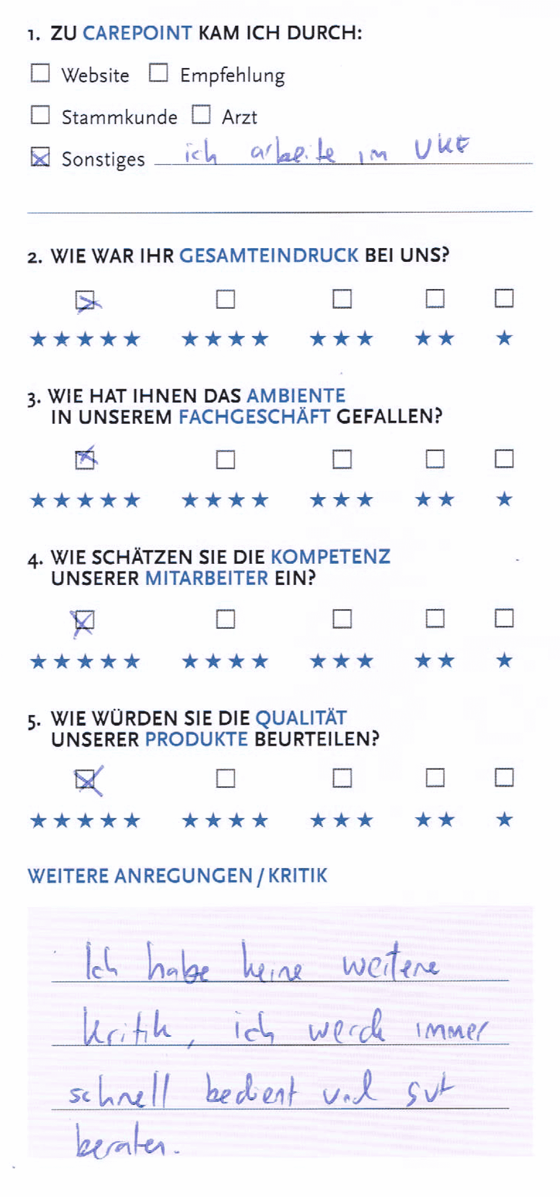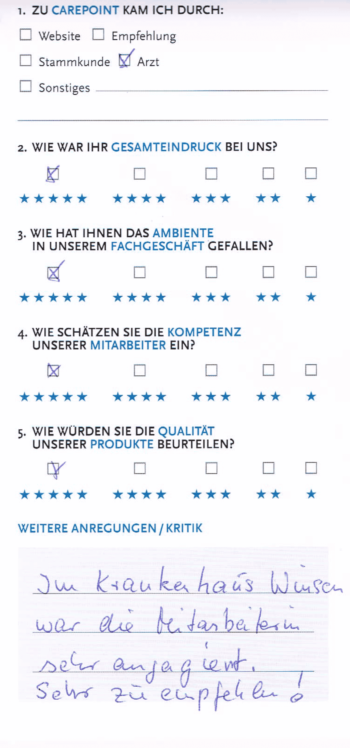Sanitätshäuser in Hamburg und Lübeck von Carepoint wurden durch beratungs-check.de auf Kundenzufriedenheit und Service getestet.